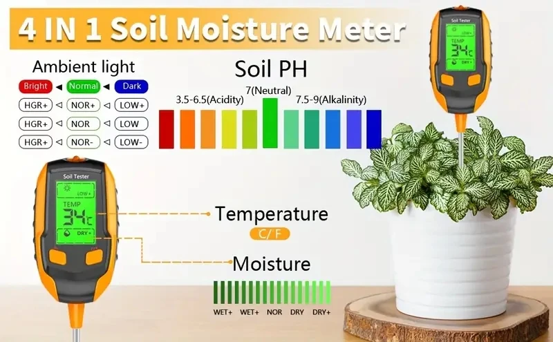 Smartgrow 4-In-1 Digital Soil Meter – Moisture, Ph, Temperature & Sunlight Intensity for Perfect Plant Care